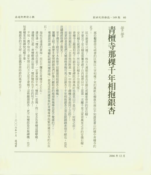 期刊: 創世紀詩雜誌 149