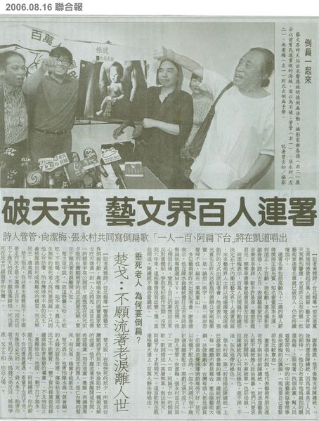 | 標題: | 破天荒藝文界百人連署 |
