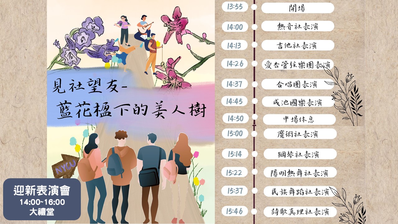 | 標題: | 國立陽明交通大學112學年度新生啟航陽明校區迎新表演會海報 |