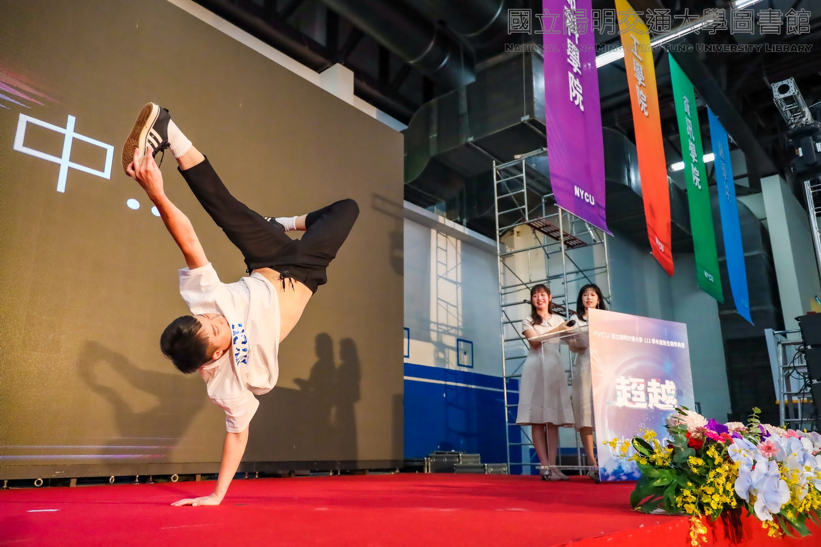 | 摘要: | 國立陽明交通大學112學年度新生開學典禮照片,於交大校區體育館,資深宿舍助教李安從hiphop的四個元素,分享精采的住宿生活,並現場表演給現場觀眾欣賞,此為數位檔案。 |
